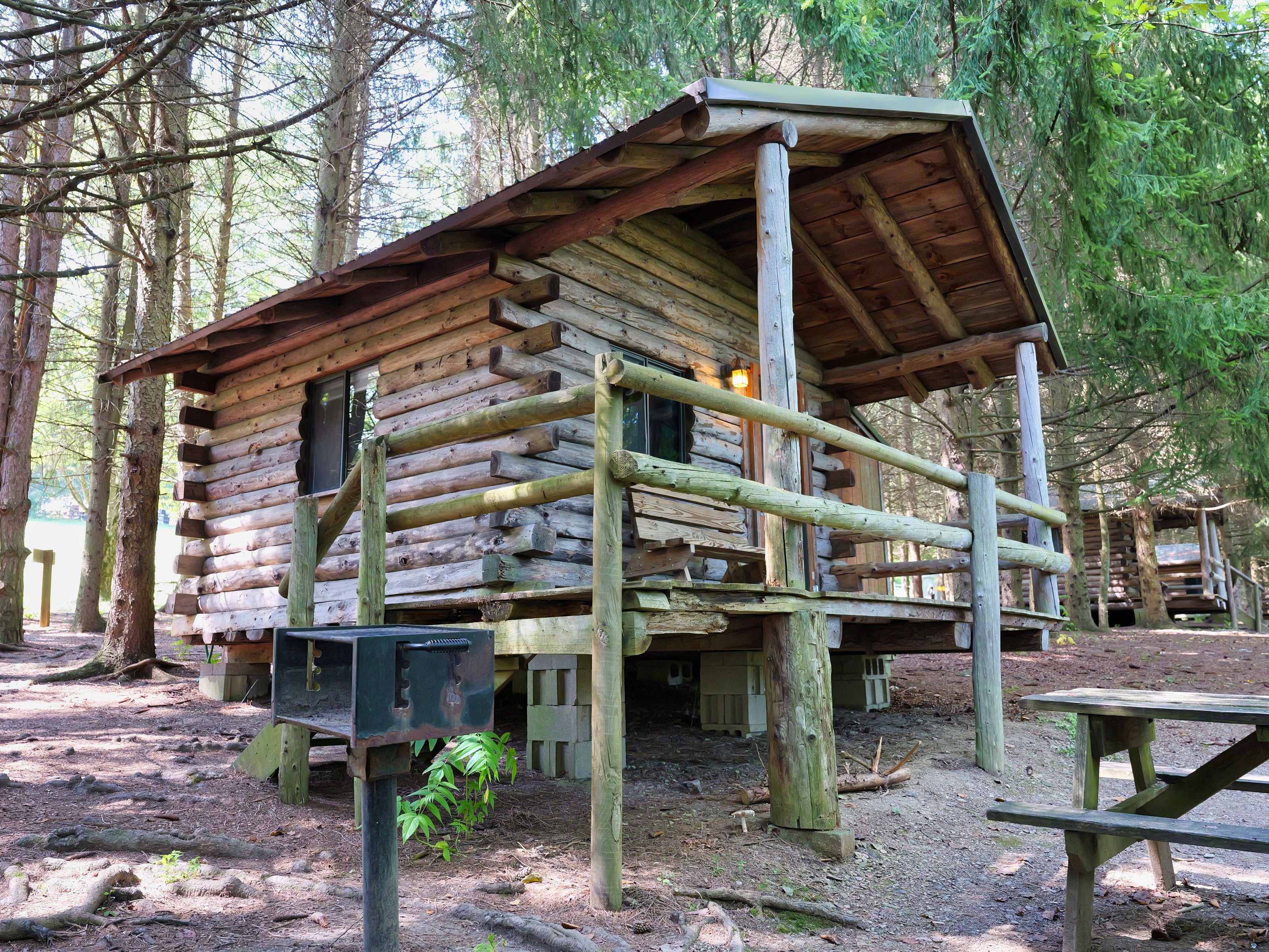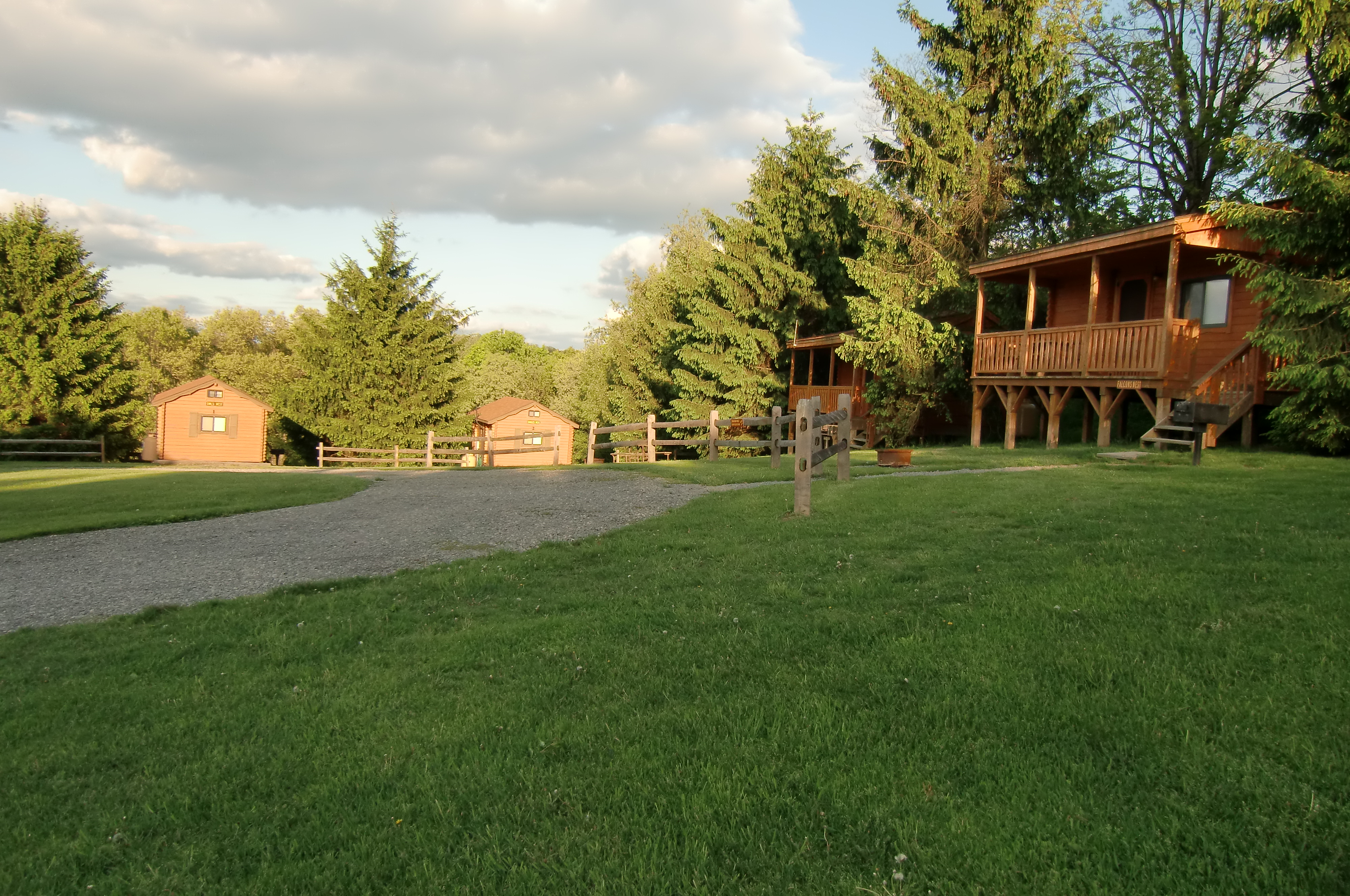These cabins offer a quiet retreat setting. They're located in the Moraine Valley and nestled between the horse pasture and the springtime trout pond. They are set back in the pines and offer some seclusion from the other campers in the area. With a beautiful view off of the porch of lush vegetation and a glimpse of the pond area, they are great for those planning a weekend to relax and recharge. Friendly pets are permitted. #’s 1 (Apache) & 2 (Cherokee) on the map.